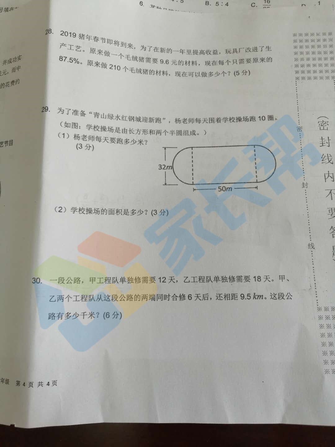 2019年武汉市青山区小学六年级数学期末卷(图片版)(8)
