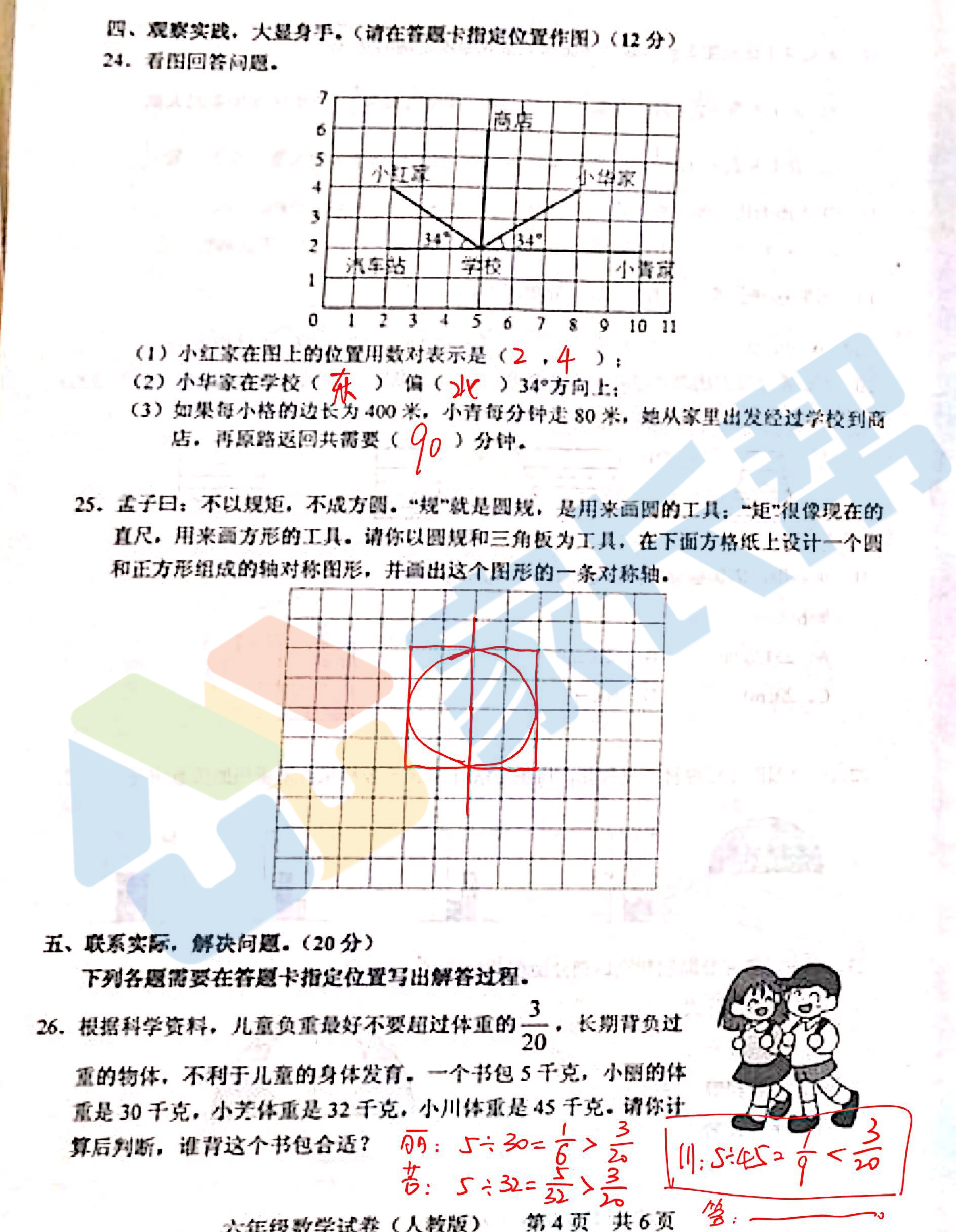 2019年武汉市武昌区小学六年级数学期末卷(图片版)(4)