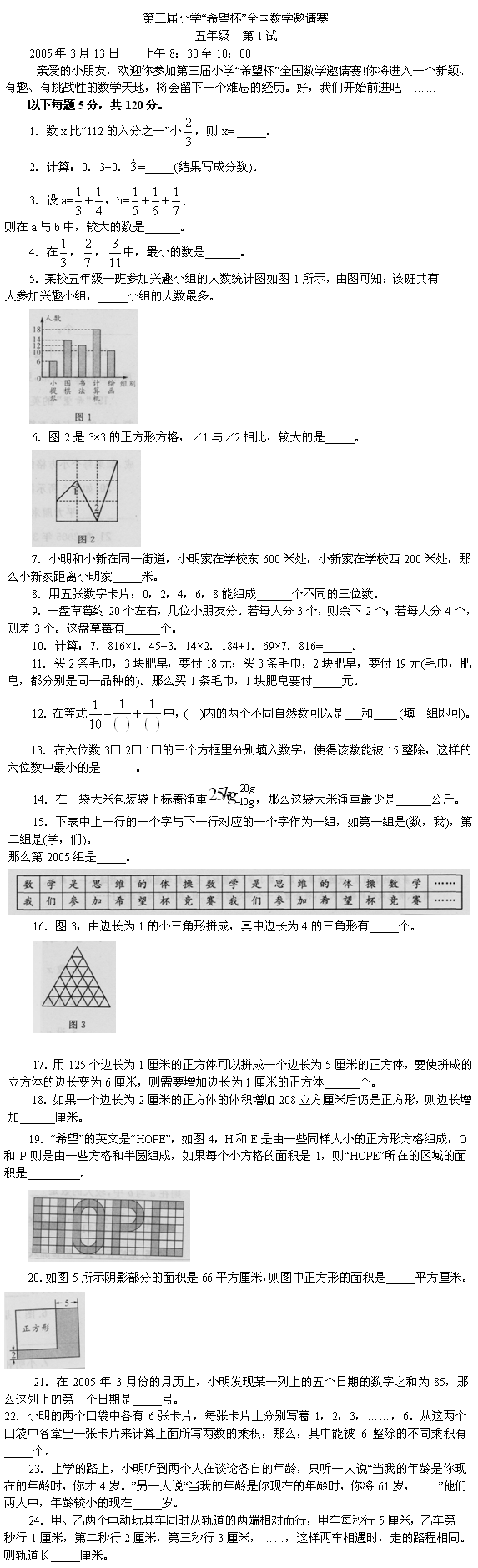 第三届小学希望杯五年级全国邀请赛