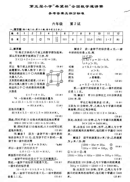 试题详情请点击下载:第五届(2007)小学“希望杯”六年级第2试试题