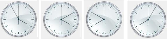 北京时间16时, 小龙从镜子里看到挂在身后墙上的4块表, 如下图, 其中最接近16时的是( ).