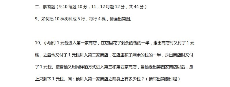 二、解答题(9、10每题10分,11、12每题12分,共44分)