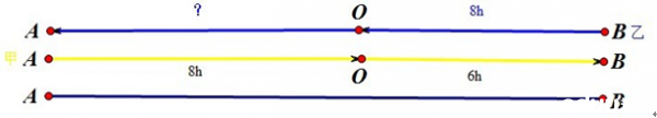 同样的路程OB,家用了6h,乙用了8h,可假设OB=[6,8]=24(km)。