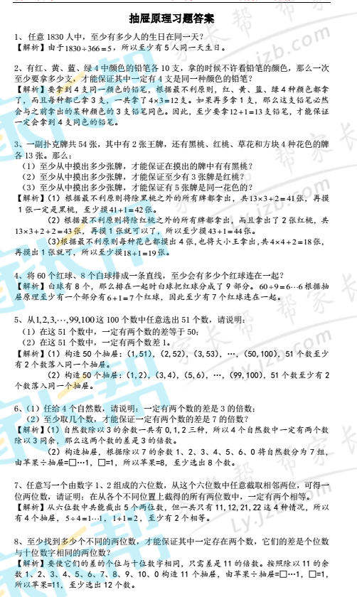备战华杯赛:抽屉原理知识点/练习题(3)