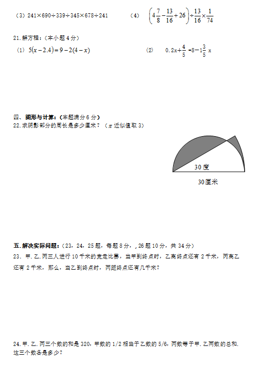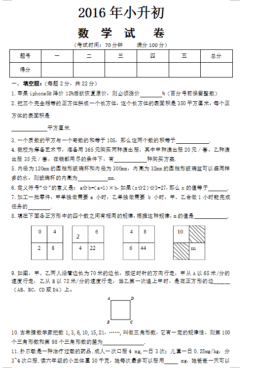 2016郑州小升初k6联赛复赛数学试卷及答案解析