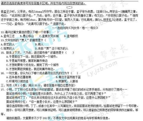 2016郑州7.2小升初阶性评价语文真题及答案(3)