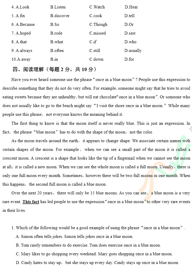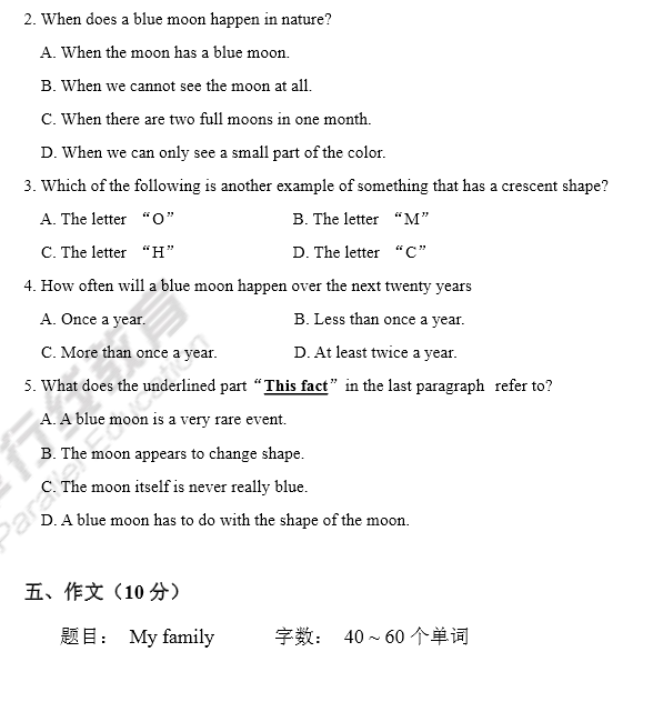 2017河南省小升初第一次联合测评英语真题答案(2)