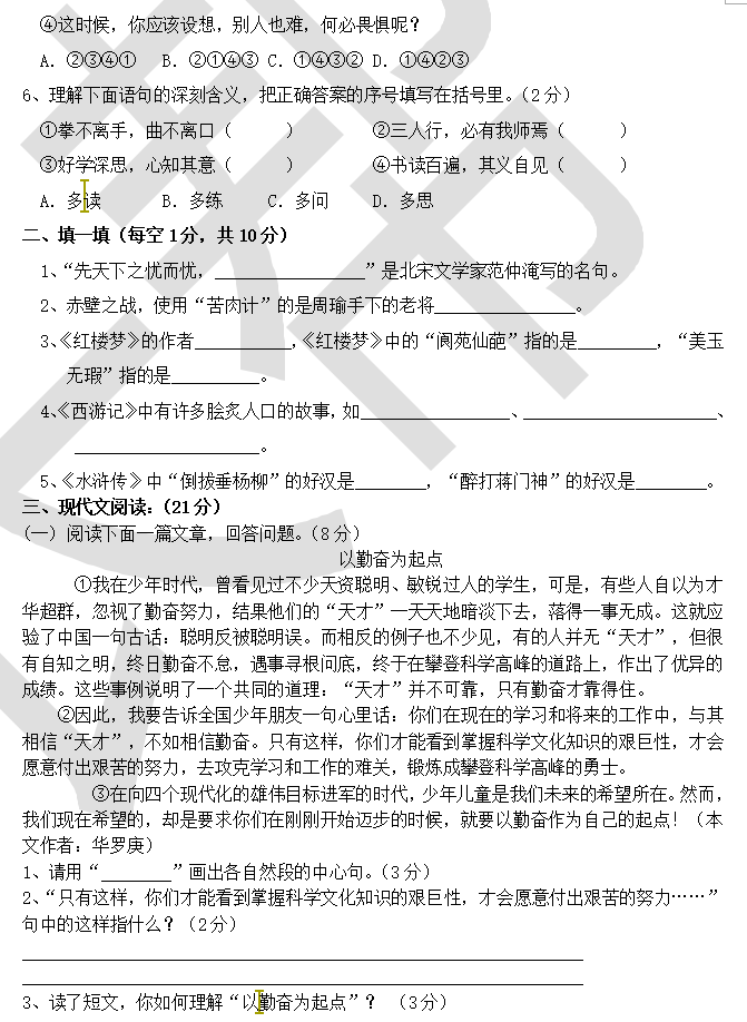 2015年郑州第一届联合杯复赛语文真题及答案(2)