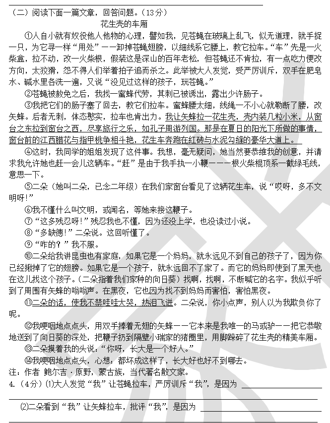 2015年郑州第一届联合杯复赛语文真题及答案(3)