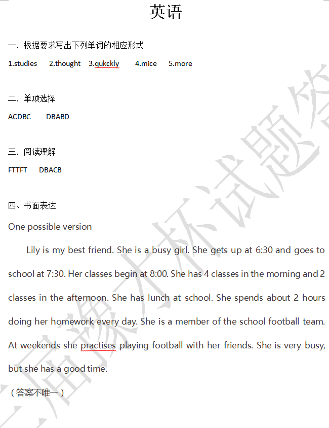 2017郑州小升初豫才杯10.23第一场英语试题及答案(2)