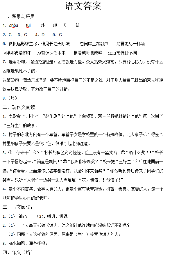 2017郑州小升初豫才杯第二场语文试题及答案(2)