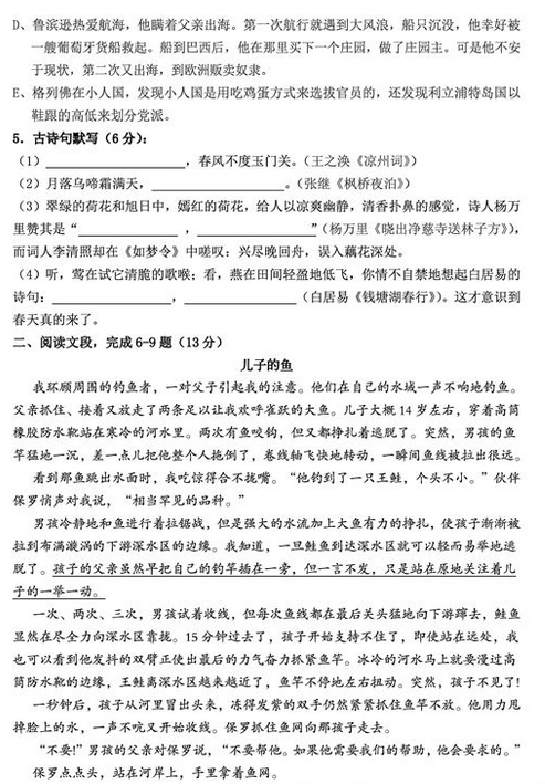 郑州小升初12月17日k6联赛语文真题(2)