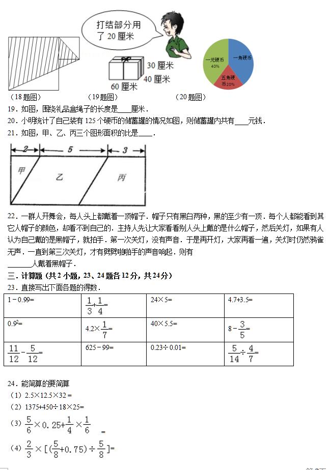 2017年郑州小升初联合杯复赛数学部分真题(3)