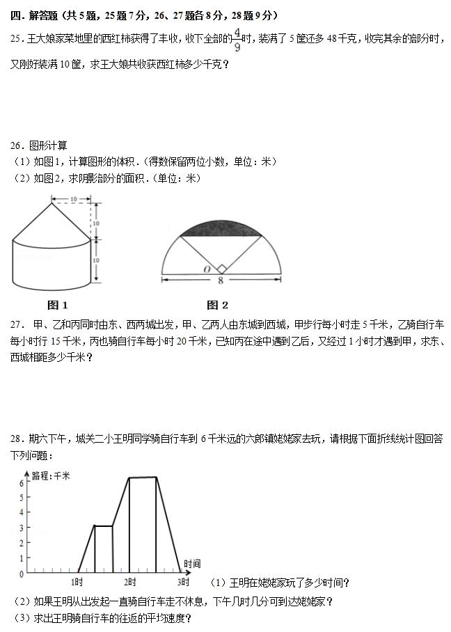 2017年郑州小升初联合杯复赛数学部分真题(4)