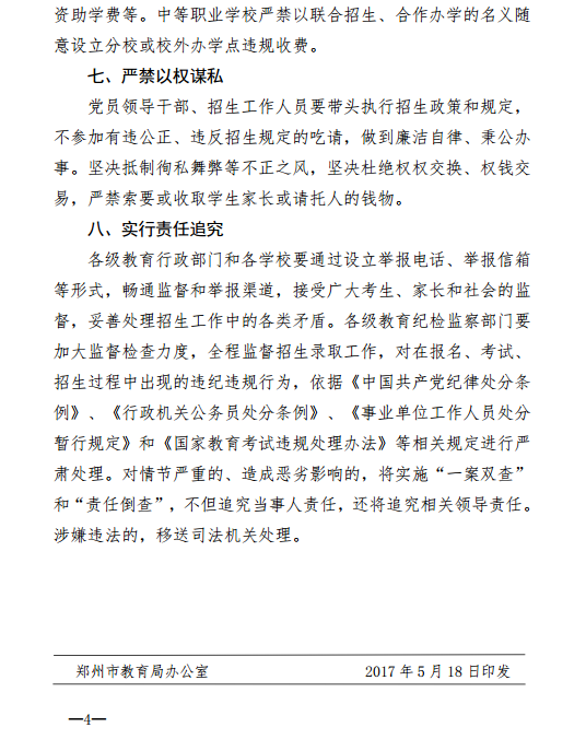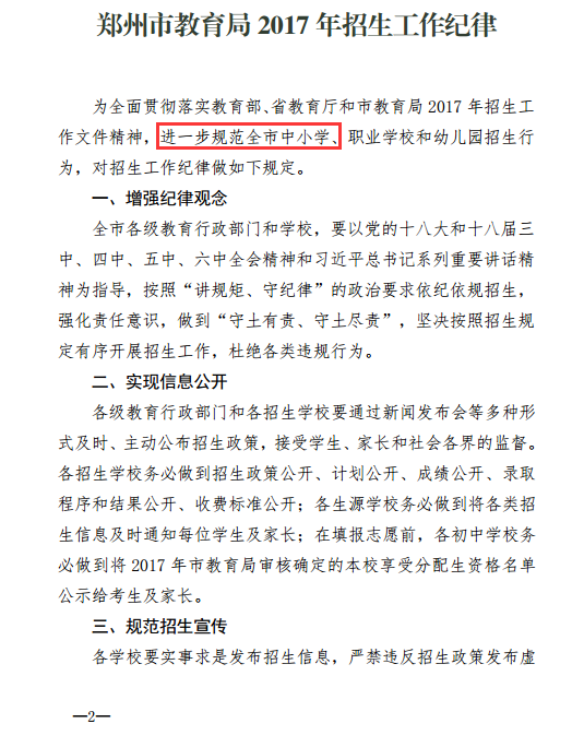 郑州给招生工作划硬杠杠 严禁采取考试方式选拔生源(2)