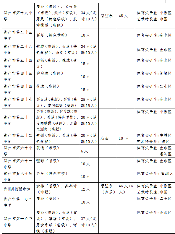 2017年郑州小升初体育艺术特长生招生计划(2)