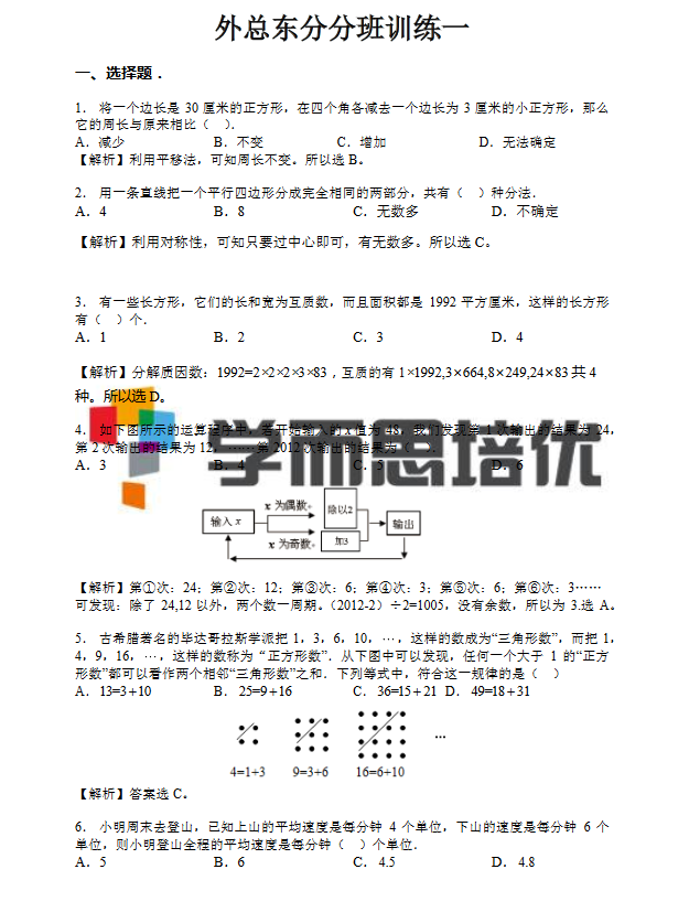 2017年郑州外总东分小升初分班考试数学模拟卷一