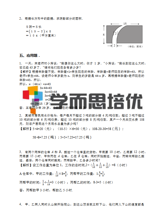 2017年郑州外总东分小升初分班考试数学模拟卷一(5)