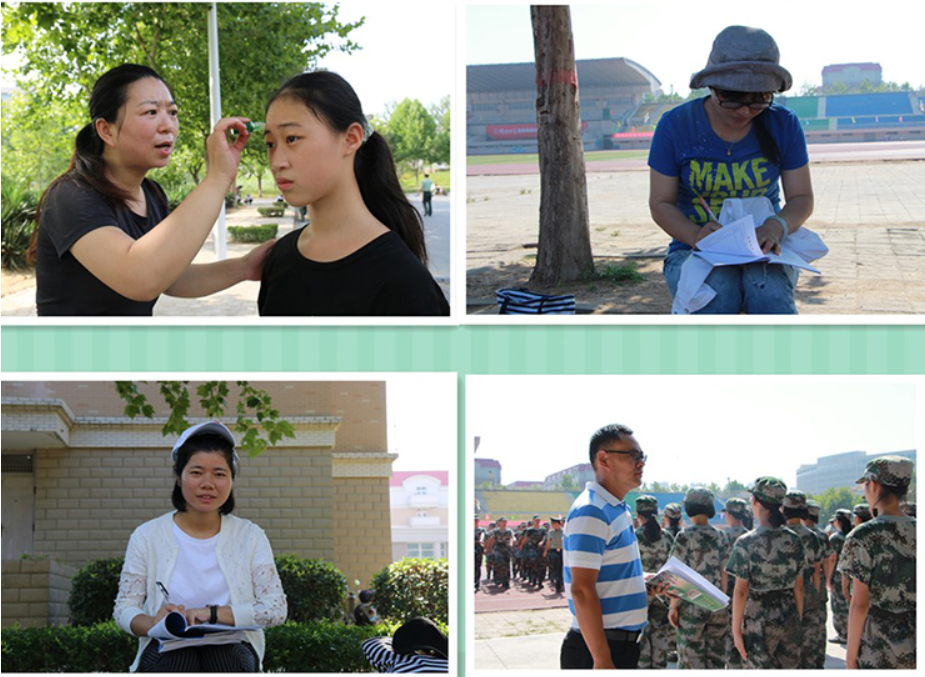 一身军装,英姿飒爽;声声教导,不言苦累。由于连日训练,很多教官的嗓子已经干哑,依然用最大的音量指挥训练。烈日下,教官们的衣服湿了干,干了又湿,有同学在军训日记中写到:“太阳是公平的,教官转身的一瞬,我发现教官的军装早已湿透,这才明白教官不是要折磨我们,而是要督促我们成长。”