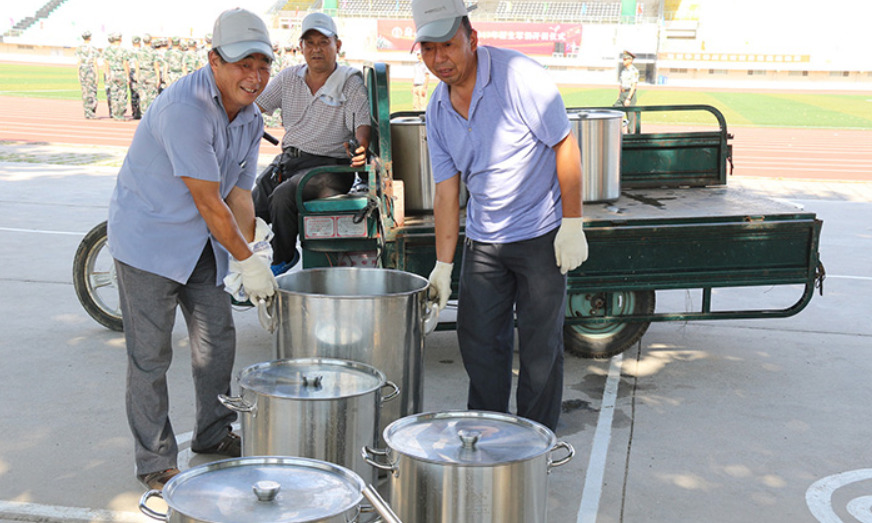 一日三餐,为同学们提供充足能量;舒适的宿舍,让同学们安心睡眠;设在操场的医疗站,给生病受伤的同学最及时的治疗;训练场边充足的凉白开,给艰苦的训练带来一丝甘甜。
