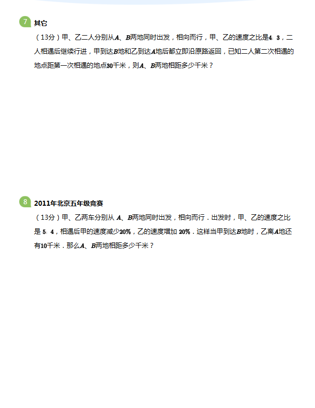 2017-2018郑州新K6&新联合初赛备考专项训练-比例解行程(3)