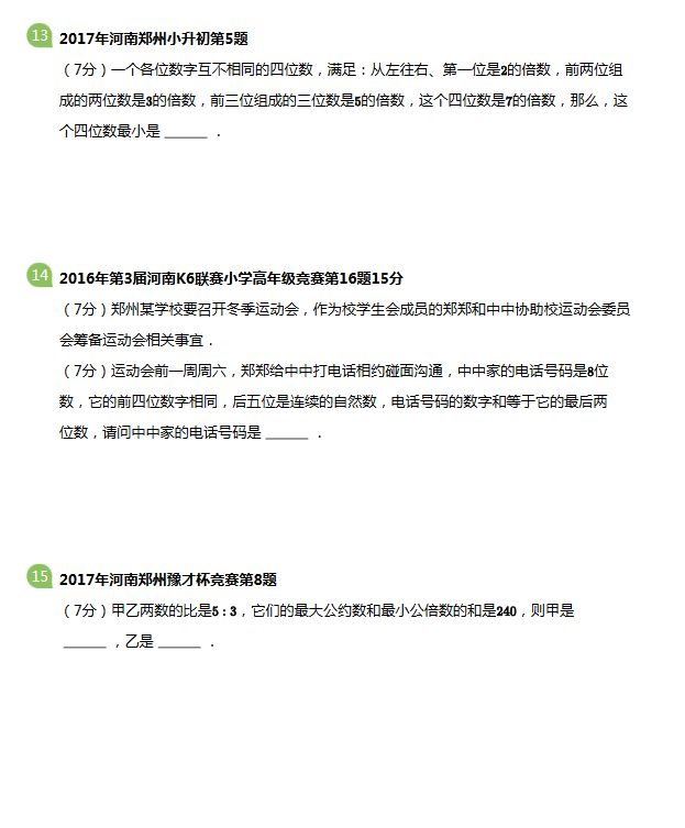 2017-2018郑州新K6&新联合初赛备考专项训练-数论综合(4)
