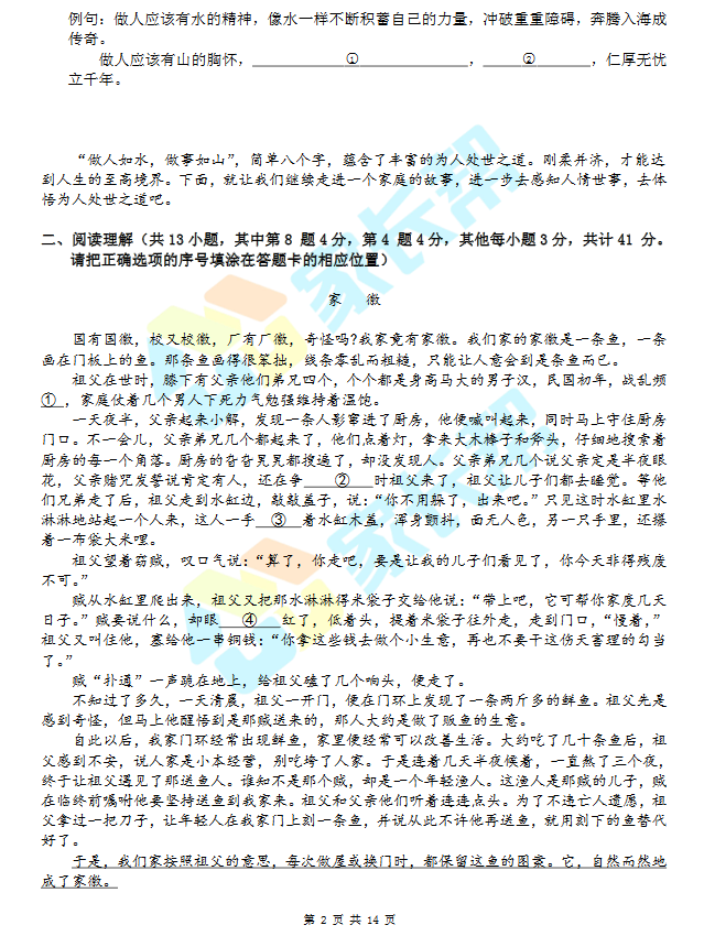 2017年郑州豫才过程性评价五年级语文真题(2)