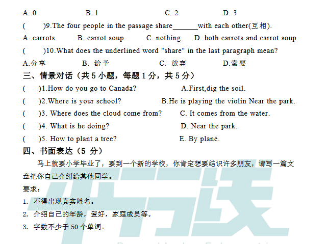 2017年郑州小升初第二次联合测评英语模拟试题(3)
