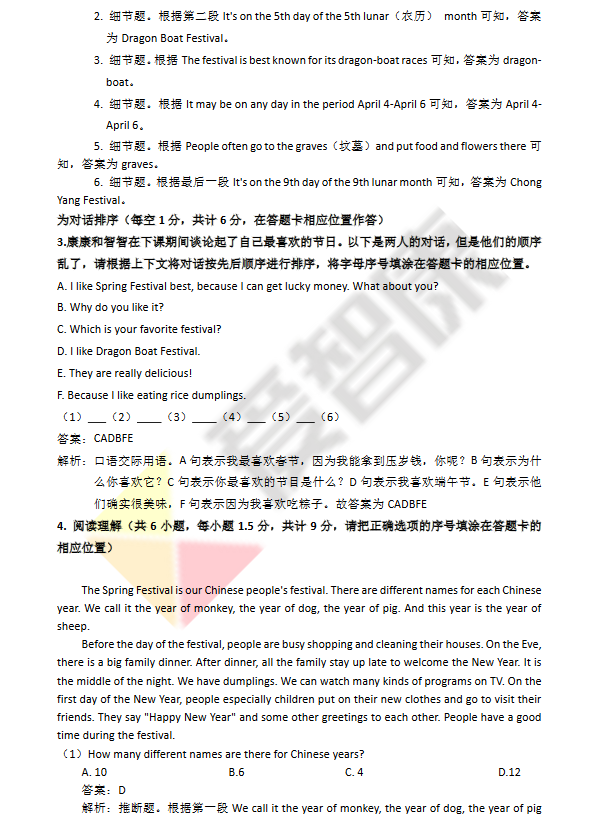 2018郑州民办初中入学阶段性评价英语真题模拟卷答案(3)