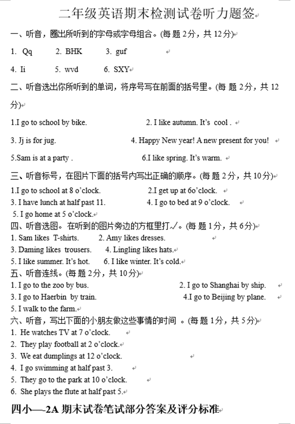 2019年郑州市小学二年级英语期末模拟卷二(图片版)(4)