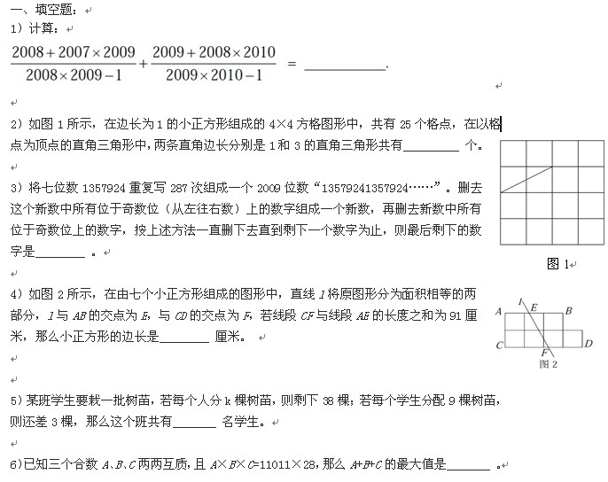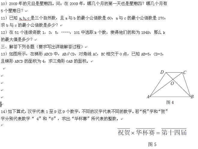 2009年第十四届"华杯赛"少年数学邀请赛决赛