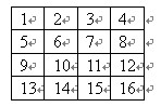 9、如图,在4×4的方格纸的每个方格中分别填上数1,2,3,4,…,16.现在要从中选取4个数,使任何两个数不在同一行也不在同一列,问共有多少种不同的取数方法?