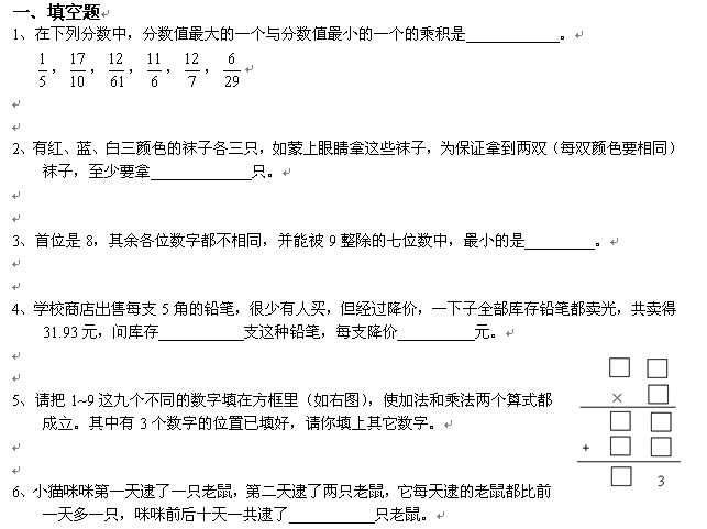 “华杯赛”赛前训练模拟题小学组决赛卷(八)