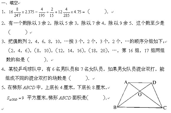 “华杯赛”赛前训练模拟题小学组决赛卷(九)