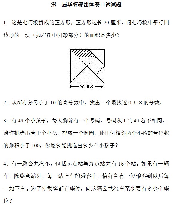第一届华杯赛团体赛口试试题及答案