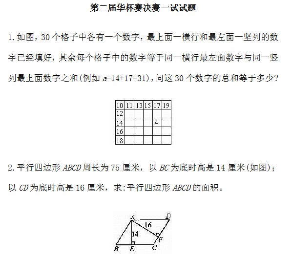 第二届华杯赛决赛一试试题及答案 成都中考网 2011-07-29 17:44:35 请下载附件: 第二届华杯赛复赛试题及答案 本地下载 推荐阅读 : 2011第16届华杯赛初中组初赛试题及答案 2011第16届华杯赛初中组复赛试题及答案