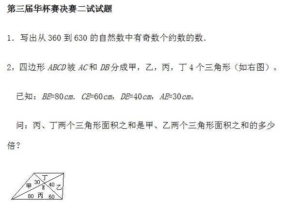 第三届华杯赛决赛二试试题及答案 成都中考网 2011-08-01 17:41:30 请下载附件: 第三届华杯赛决赛二试试题及答案 本地下载 推荐阅读: 第三届华杯赛初赛试题及答案 第二届华杯赛决赛一试试题及答案