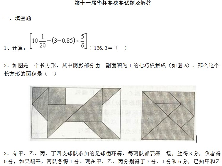 第十一届华杯赛决赛试题及解答 成都中考网 2011-08-04 15:37:42 请下载附件: 第十一届华杯赛决赛试题及解答 本地下载 推荐阅读: 第十届华杯赛总决赛二试试题及解答 第十届华杯赛初赛试题及解答 第九届华杯赛决赛试题及解答