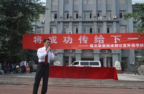 9月30日下午,成都石室中学迎来了一批客人,他们是中国社会科学院研究生院特邀教授、光明日报社顾问、广东省人民政府教育顾问、广州英豪家庭教育研究所所长陈忠联教授携广州英豪剑桥国际高中学校校长陈舒,他们将为石室中学几千名师生、家长带来“将成功传给下一代”的专题报告会。