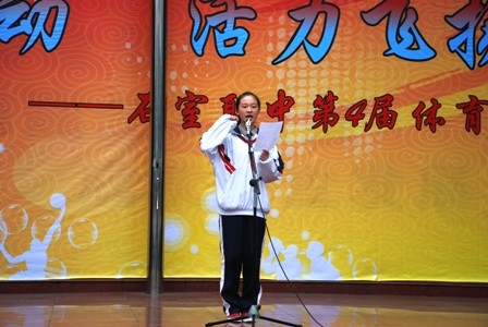 在开幕式上,石室联合中学校长张伟发表了热情洋溢的致词,接着是石室联合中学班主任老师的太极拳表演和学生的健美操表演;裁判员代表和运动员代表分别进行了宣誓。最后在歌声和掌声中石室联合中学书记赵东宣布了石室联中第四届体育节正式开幕,也预祝本届体育节取得圆满成功!