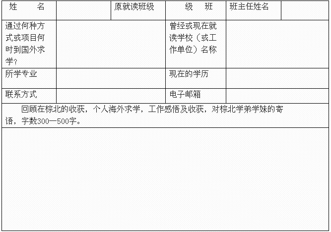 一、追踪对象:曾就读于棕北中学(棕北联中)毕业后留学海外或出国工作的学生,具体完成以下内容: