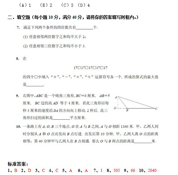 2012年第十七届华杯赛网上初赛试题及答案(高年级组)