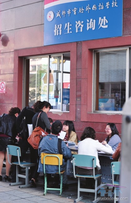 2012年在成都实验外国语学校咨询报名事宜的家长不算多。