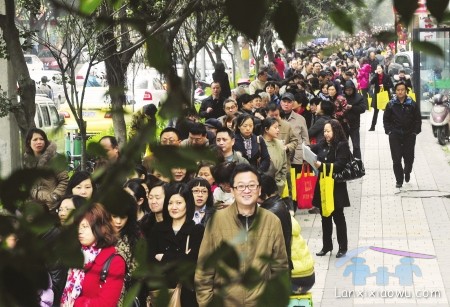 2011年西川中学,家长们排队排了三条街。(资料照片)