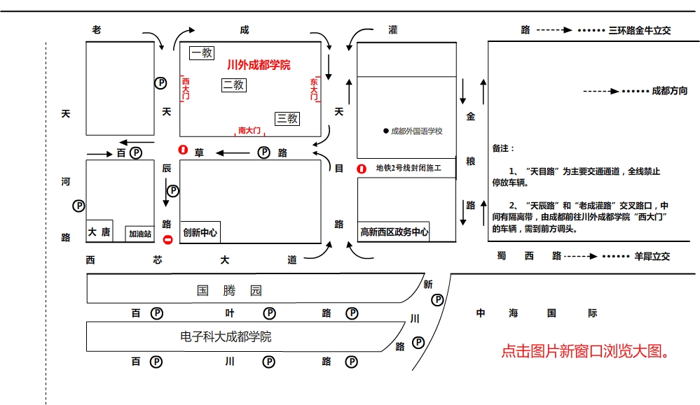 二、考生要严格按照学校通知的测试证号段,分别由东门、西门和南门进入考场。详细线路图请在成都市实验外国语学校网站上查询。
