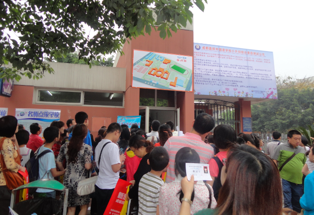 2012年4月29日成都七中嘉祥外国语学校小升初测试在嘉祥本部校区举行。据了解,本次参考人数共计6800多人,实际录取人数约300人,22:1的录取比例,竞争异常惨烈!