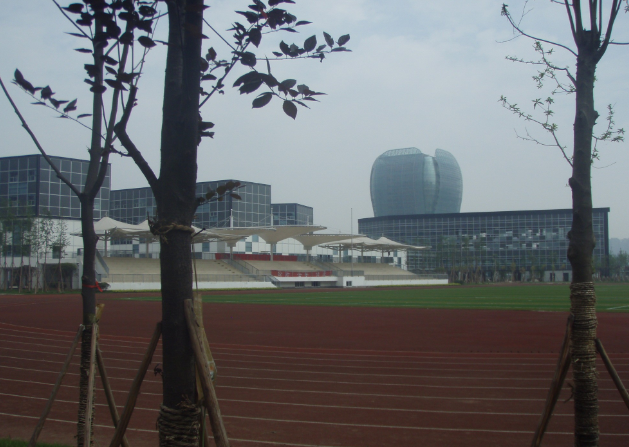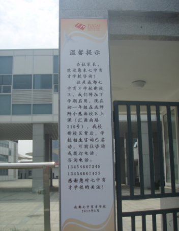 这是新校区的大门,是钥匙工程。新初一就将在这里上课了。因为里面在安装设备,没能进到校区里面。我就在在校外拍了些图片(育才老校区的新教学楼据说投资达到2亿。看来锦江区在教育的投入上是很舍得的。)