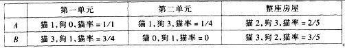 【分析与解】 如下表给出的反例指出:对所提出问题的回答应该是否定的。表中具体写出了各个单元及整座房屋中的宠物情况和猫占宠物总数的比率。
