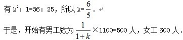 6.现有男、女职工共1100人,其中全体男工和全体女工可用同样天数完成同样的工作;若将男工人数和女工人数对调一下,则全体男25天完成的工作,全体女工需36天才能完成,问:男、女工各多少人?