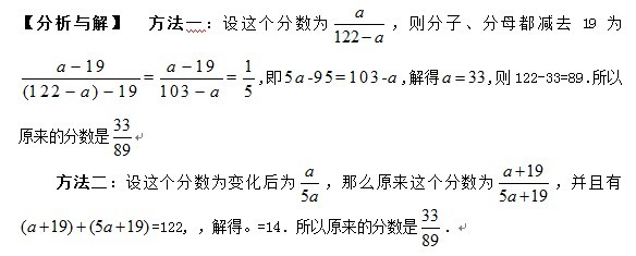 1.一个分数,分子与分母的和是122,如果分子、分母郡减去19,得到的分数